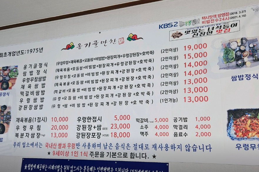 (2인이서 먹었을때 꽤 많아서.. 우렁무침을 뺀 쌈밥정식 시키셔도 충분 할 것 같습니다!)