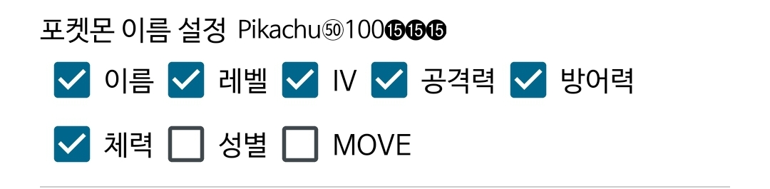 피지샵에서 이름변경을 설정하면 위에처럼 레벨, IV, 세부개체값이 전부 셋팅이 됩니다!