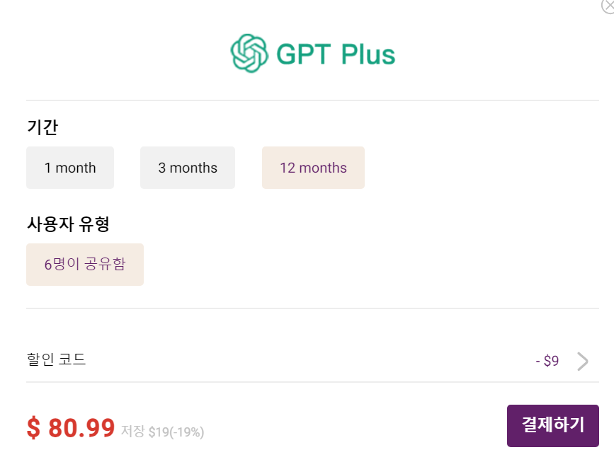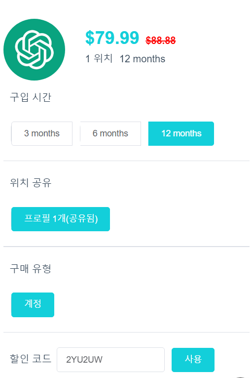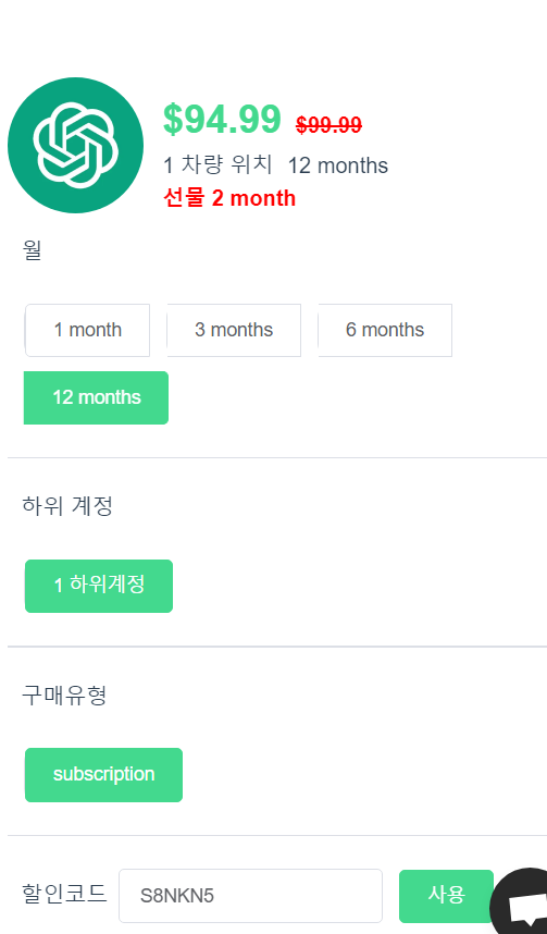 세개 사이트 모두 chatgpt 뿐만아니라 넷플릭스, 유튜브 프리미엄, 디즈니 플러스 등 여러 OTT 서비스들을 계정 공유 형태로 구독 할 수 있습니다. 10% 할인 받고 구매해보세요.