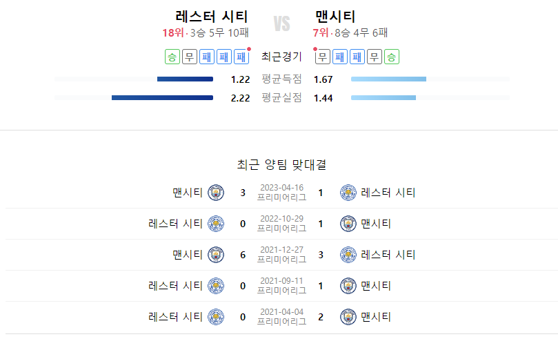 이번 경기는 강등권 탈출을 노리는 레스터와 상위권 복귀를 노리는 맨시티의 절실한 한 판 승부가 될 것으로 기대된다. 양 팀의 수비 불안을 고려할 때 다득점 경기가 예상되며, 홈 팀 레스터의 저력과 맨시티의 우수한 전력이 맞붙어 흥미진진한 경기가 펼쳐질 것으로 보인다.