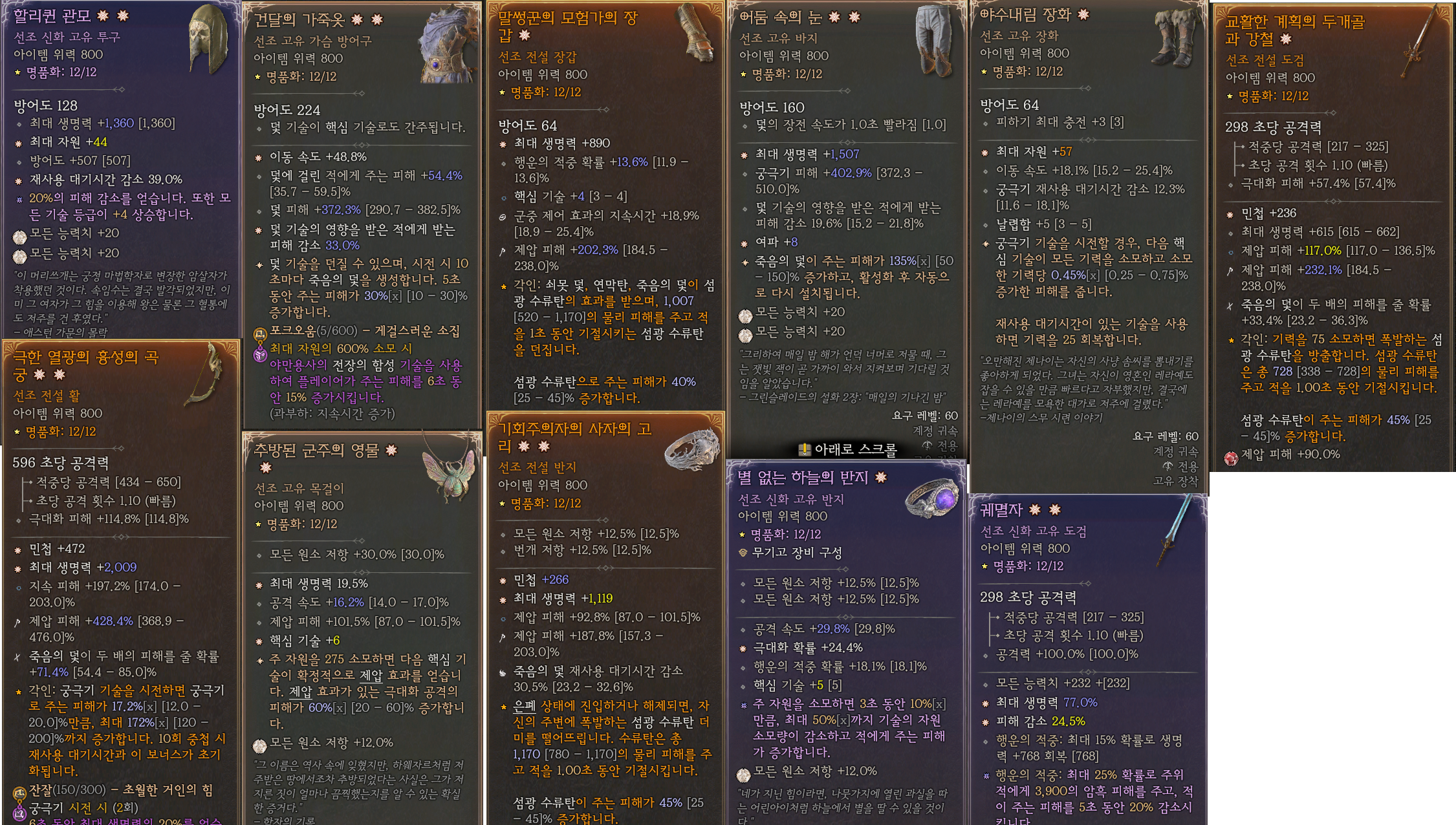 - 목걸이 : 추방된 군주의 영물(최생, 핵심스킬 어픽, 고유옵 중요)