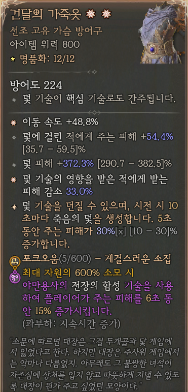 특히 위 건달의 가죽옷 으로 인해 죽덫이 원거리 공격이 되고 핵심 기술로 취급 되어서 이번 시즌에 각광받게 되었습니다.